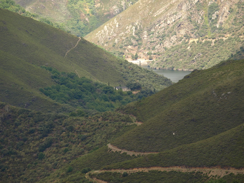 A esquerda Mondón, o fondo o encoro de Santa Eulalia.