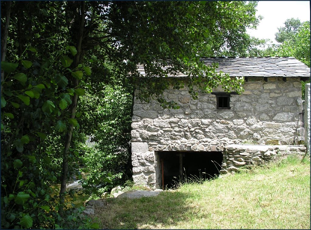 Muíño en Xares. Este muíño perfectamente reconstruido está a carón do Hotel "El Ciervo" no pobo de Xares. O río por suposto é o Xares.