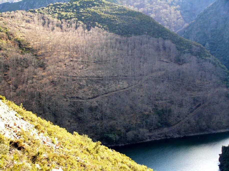 Lo que queda del bosque de castaños salvajes que bordean el Balneario de Mondón.