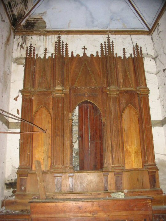 La capilla por dentro está totalmente esquilmada. Queda este altar en madera...Hasta cuando?