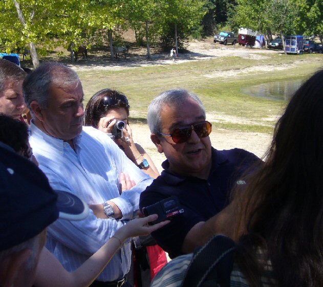 izquierda) y Secundino Lorenzo. Al fondo el embalse de Prada.