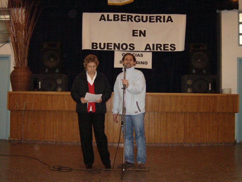 Comienzo del acto. La emotividad se ve en las fotografías. La bandera y otras muchas cosas.En la foto Lily y Rubén.