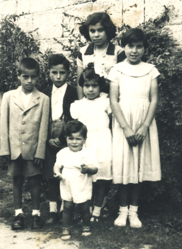Comunión de Vicente. Vicente, Luis, Celia, Figo, Lela y Chon.