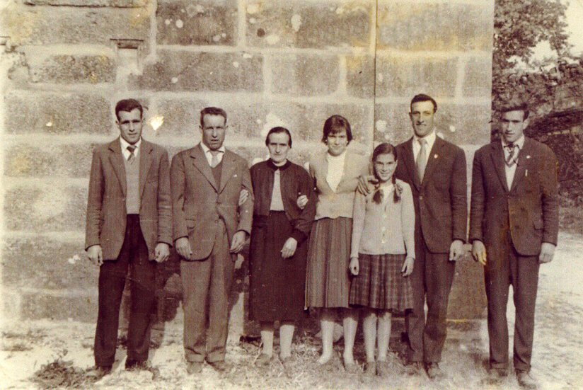 A familia do Dictino (Dictino Gómez e Prudencia Gago). O segundo pola dereita é Sabino un amigo que vive en Moaña.