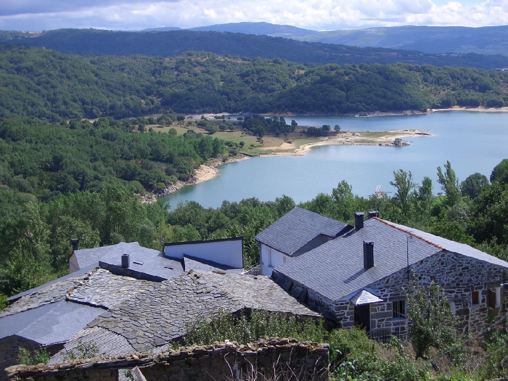 Vista del recodo donde está sumergida Alberguería, desde el pueblo de Prada. Ourense.