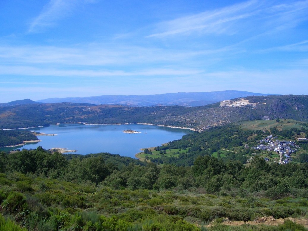 Pueblo de Prada. Al fondo el embalse de Prada. A la derecha cantera construida en antiguos terrenos de Alberguería.