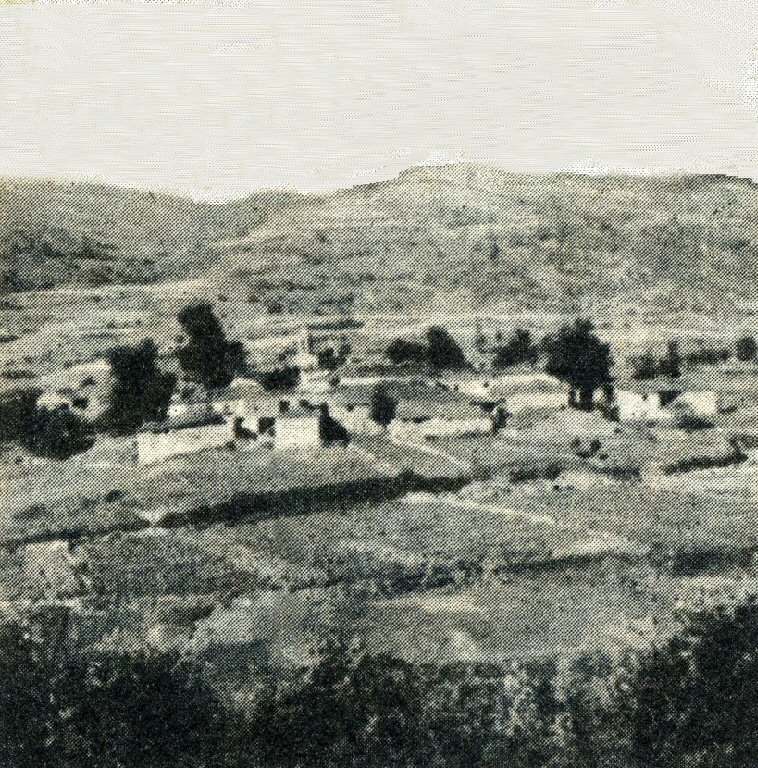Pueblo de Alberguería. Junio 1957. Los árboles la mayoría son frutales (nogales, avellanos, cerezos, perales, etc)