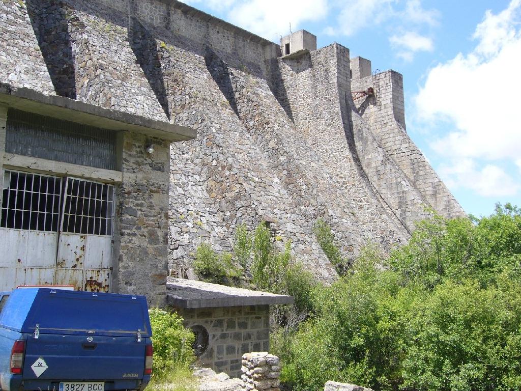 A presa vista dende abaixo impresiona bastante os materiais chaman bastante a atención. Realmente non era unha presa pequena...La presa podía albergar 8 hm3( o encoro de Prada son 128 m3, ou sexa era menos da décima parte) . A altura era de 33 metros, ou sexa sobre 10 pisos que é o que mostra a fotografía.