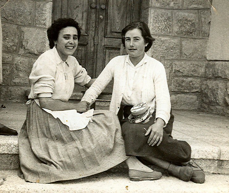 Julia en el poblado con una amiga.
