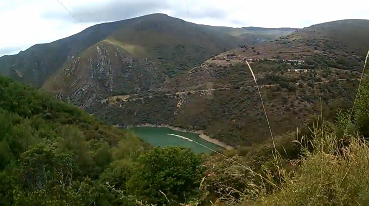 fondo el embalse de Prada y las casas de Moncabril.