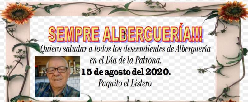 Paquito nos desean un día de la patrona de Alberguería muy feliz