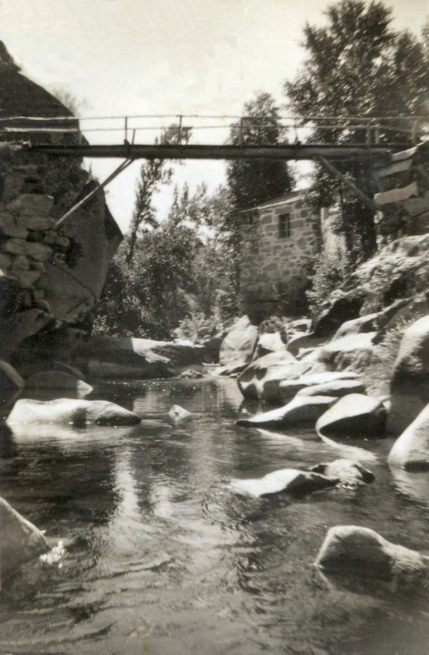 O muíño do Amancia e a pasarela, hoxe asolagada a pe de presa. O río e como non o Xares.