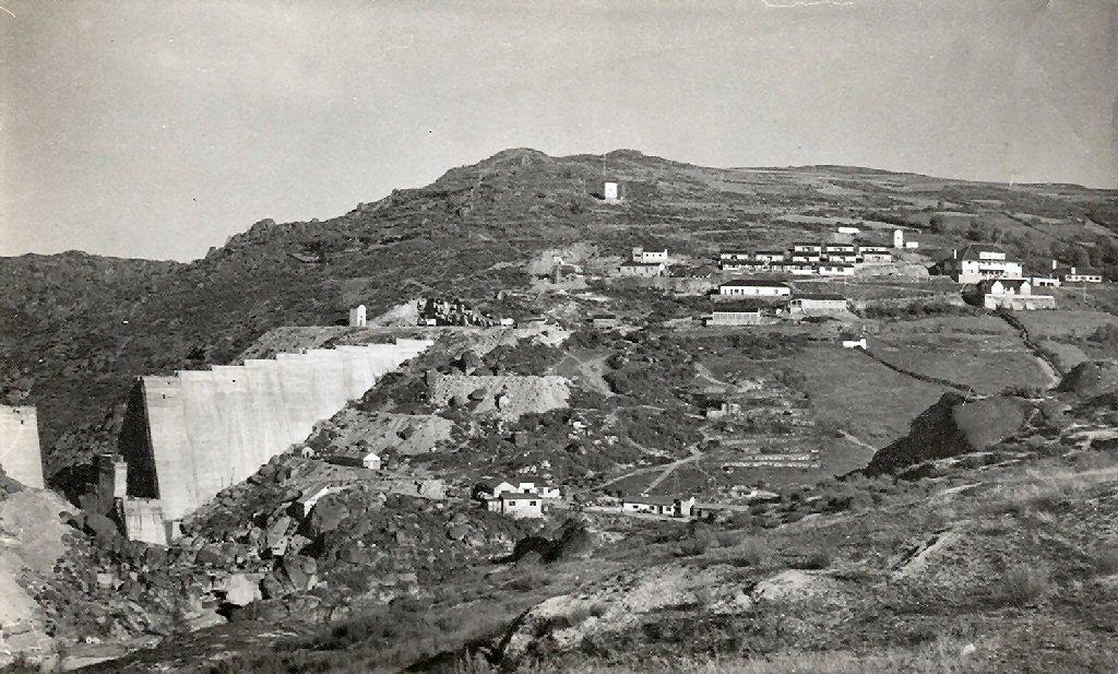 A presa a punto de rematarse. Observar a infraestructura da construcción así como o río Xares pola esquerda e Preboubo a dereita dende onde está sacada a fotografía.