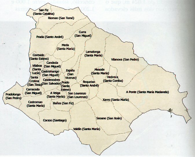 Sabemos que unha legua eran 5,5 kms polo tanto Ourense estaba a 77 kms. Astorga a 82,5 km. e Valdeorras a 11 km.