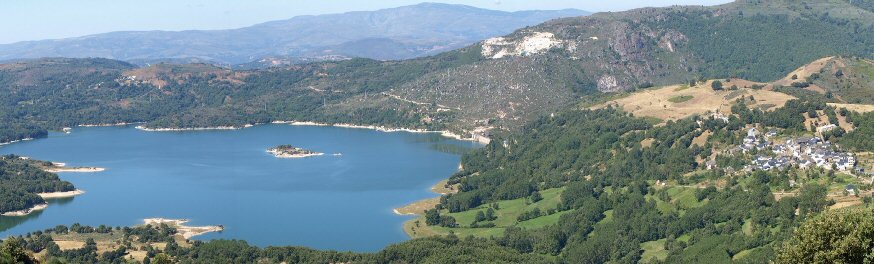 Na fotografía a vista do encoro de Prada, dende unha altura de 600 metros onde pode verse a Isla Preboubo e intuir onde estaba Alberguería. (Programa SIGPAC).