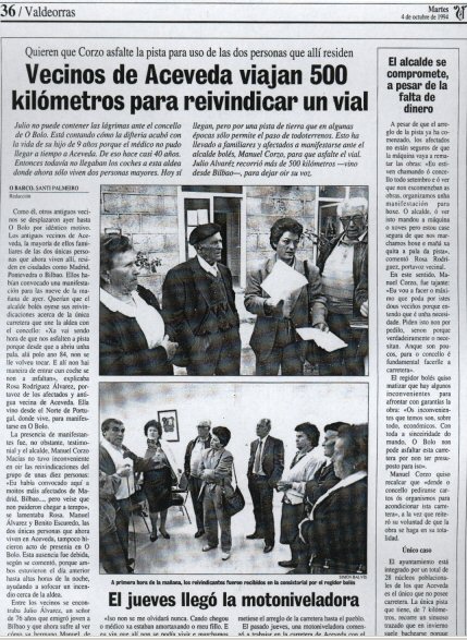 nin tiña estrada no ano 1994, o primeiro camiño de terra data de