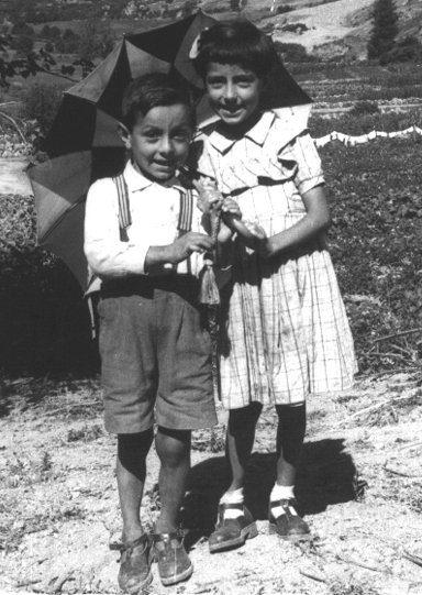 Rapaces xogando cun paragüas.