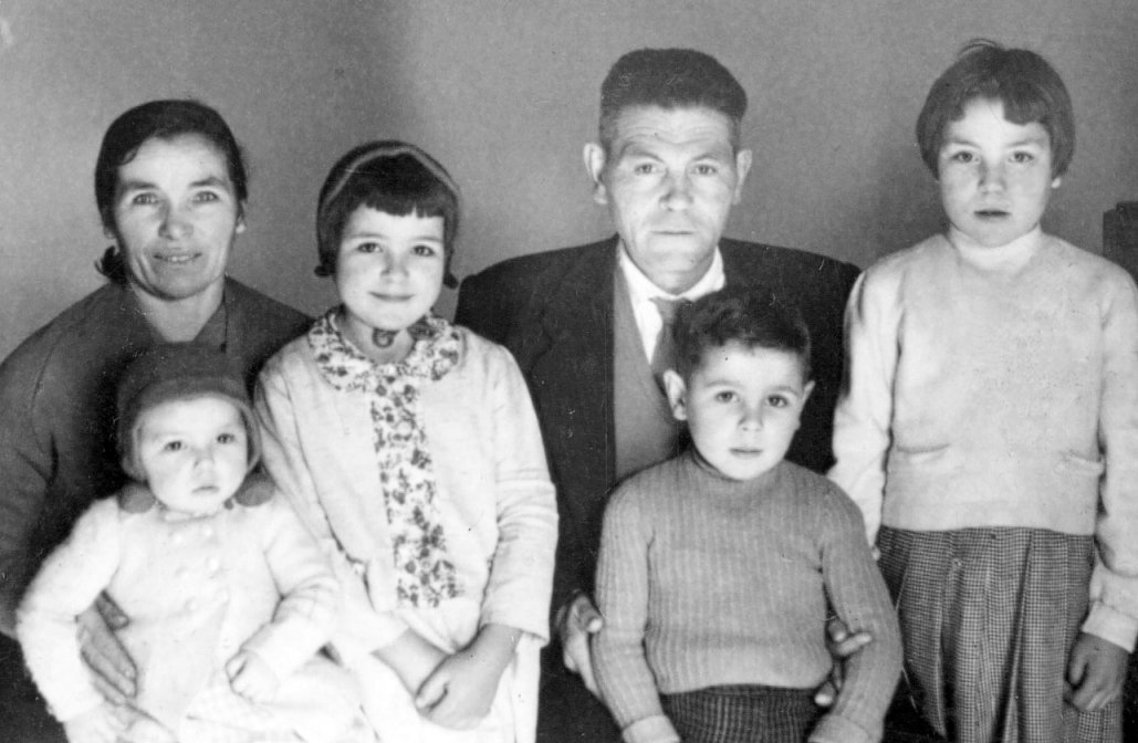 Vicente Paradelo e Isabel López, con algúns dos seus fillos:Isabelita, Emma, Manolito e Rosa. 1950-60