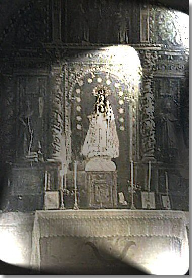 Altar y Virgen de Alberguería, iluminada por una luz artificial colocada en el altar. (Secundino).