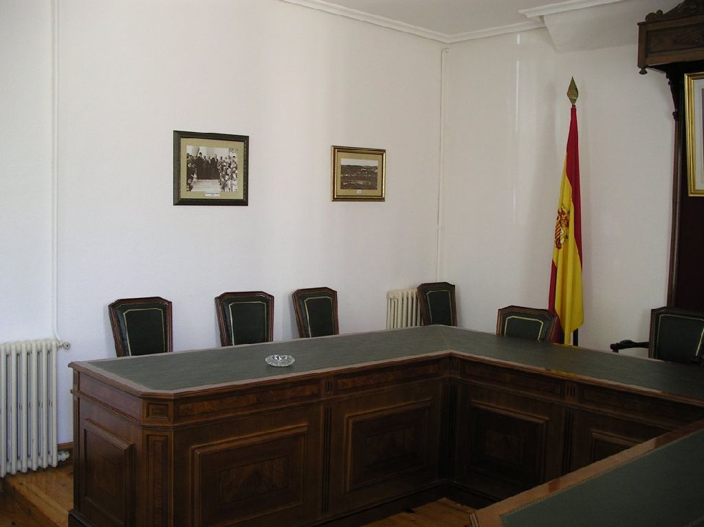 Salón de plenos da Veiga. Ourense. Na parede una fotografía de Alberguería.