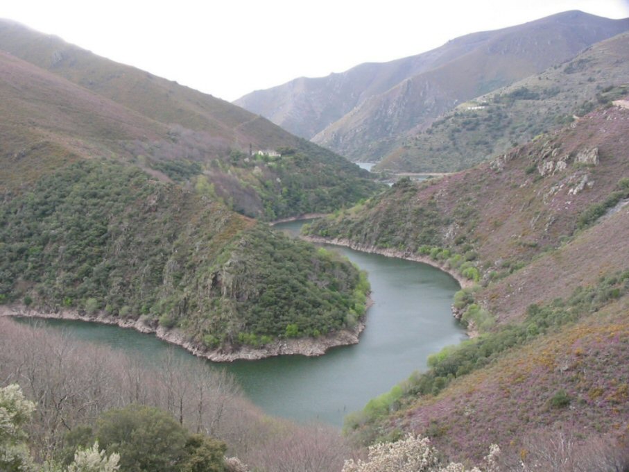 Mondón y su entorno. Se trata del río Xares y del embalse de Santa Eulalia.