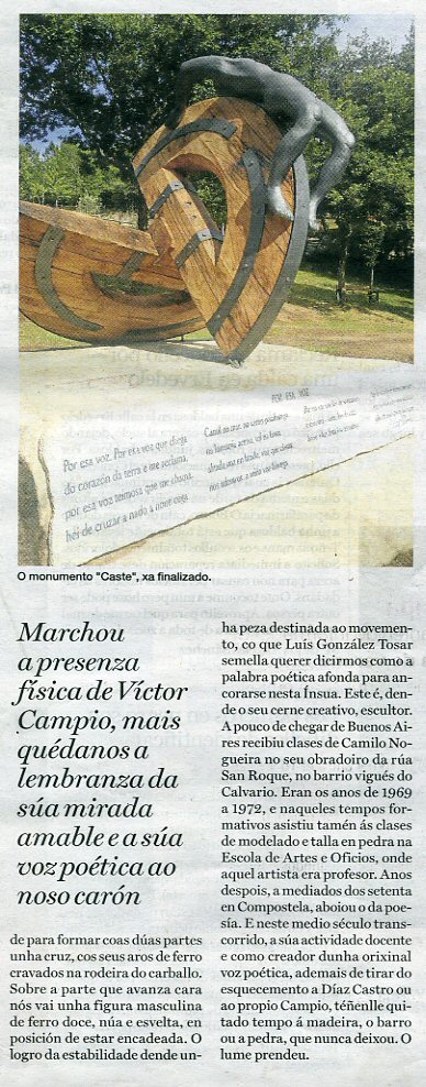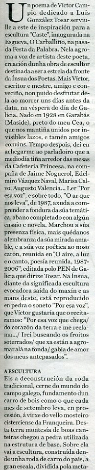 Poesía de Víctor campio Pereira que aparece o pe da escultura: