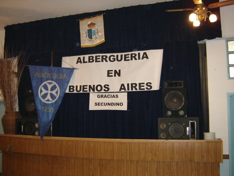 Cabecera del banquete o escenario. Por supuesto que para mi es un honor figurar en el cartel, al lado nada menos de nuestra bandera de Alberguería. Por cierto preciosa.