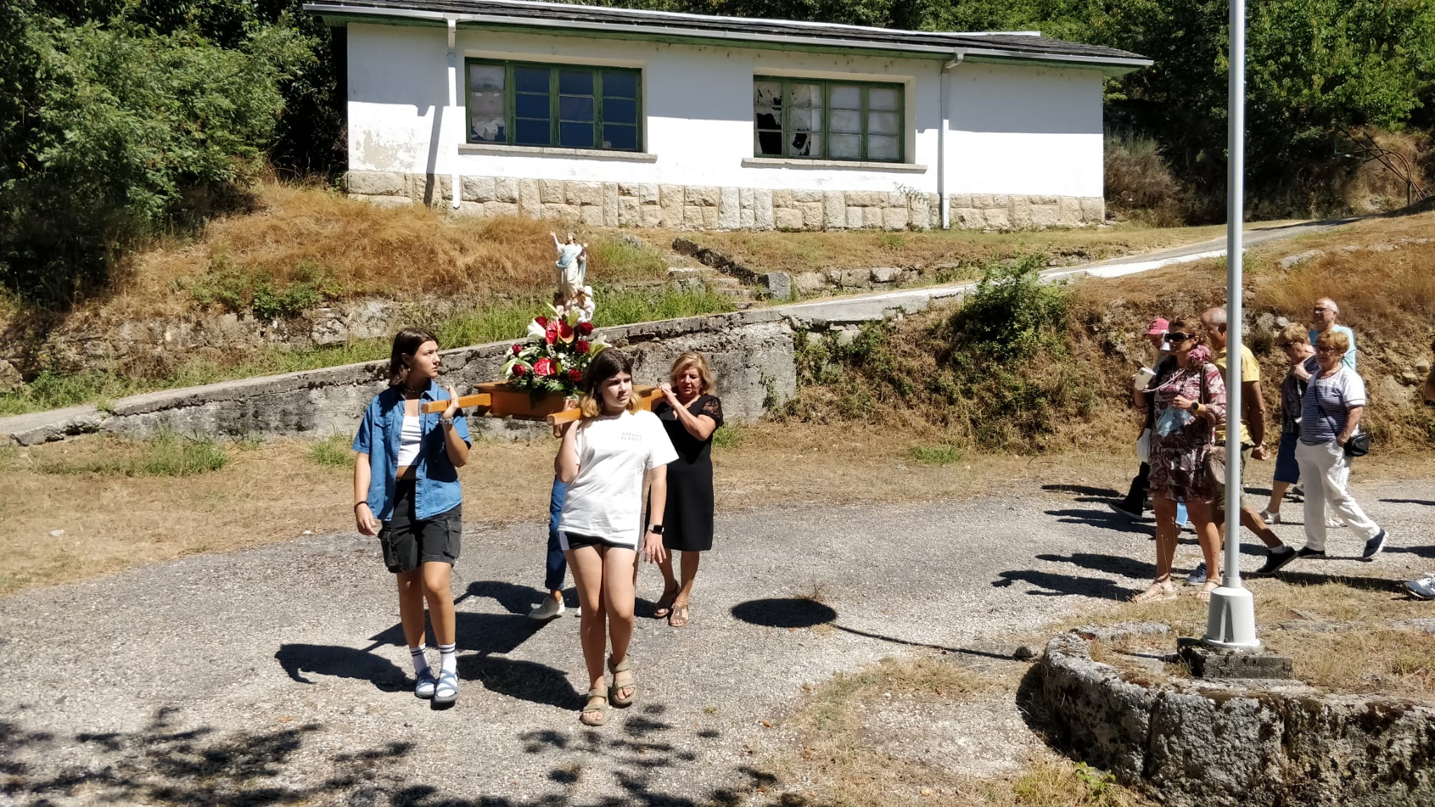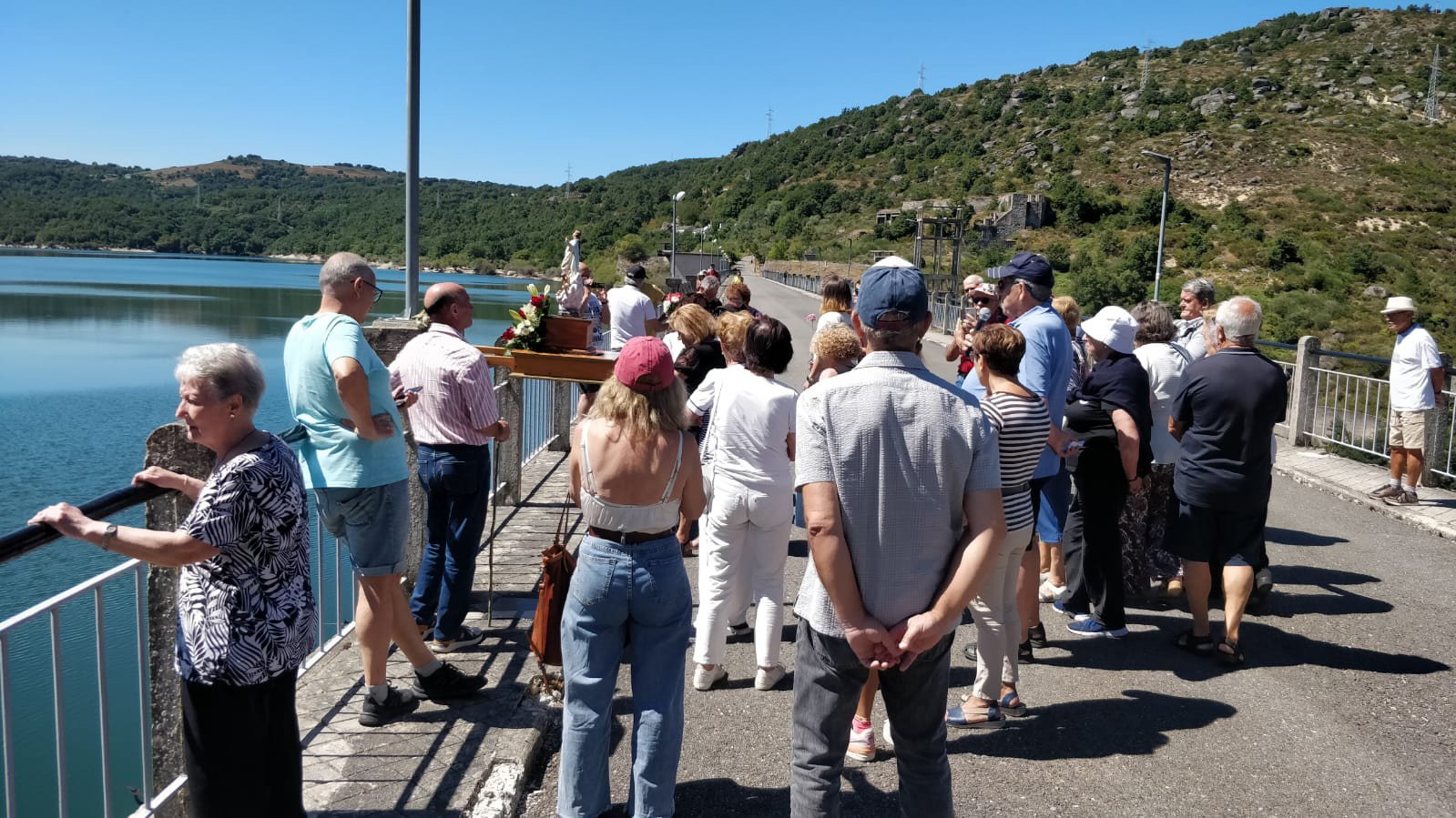 la gente que acompañó a la virgen hasta el embalse en donde