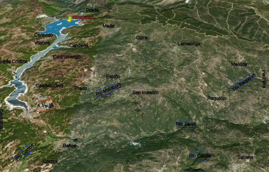Mapas sacados de Google Earth: Parte esquerda do Concello de A veiga: