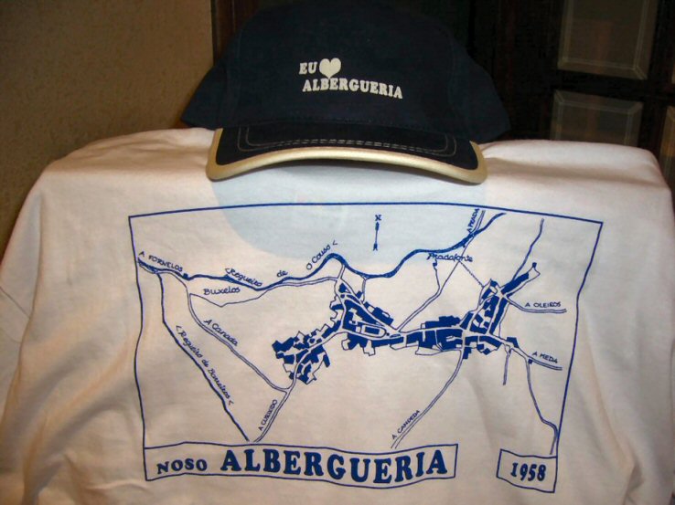 Efectivamente xa temos camiseta de Alberguería e tamén gorra, na fotografía