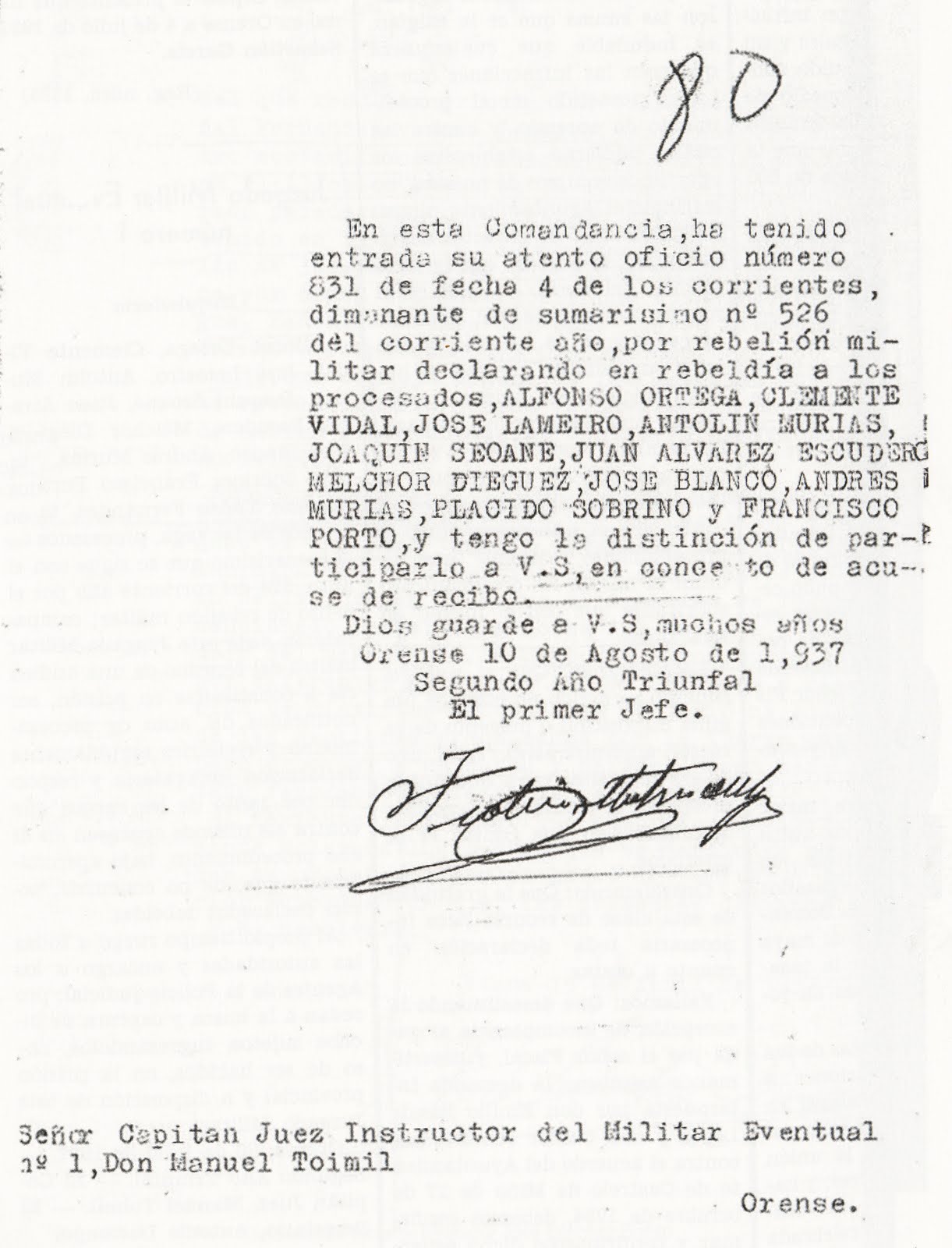 instrucción y en la Audiencia de Orense.