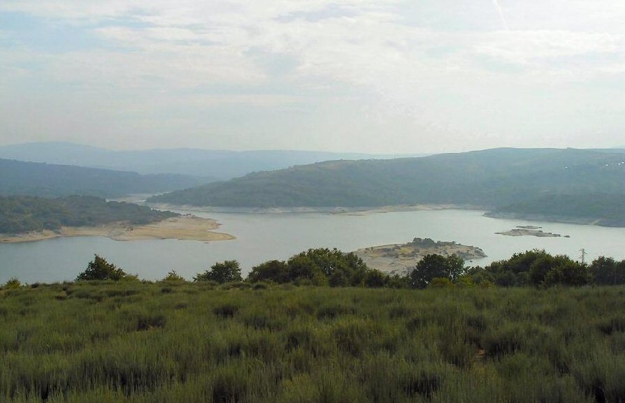 Esta é outra fotografía do río Xares e a isla Preboubo vista dende O Piorno. Nesta zona a poucos metros da pasarela e dos muíños que se ven montouse a presa. Tamén esta fotografía explica o feito de que se vexan tres pequenas islas cando baixa o encoro.