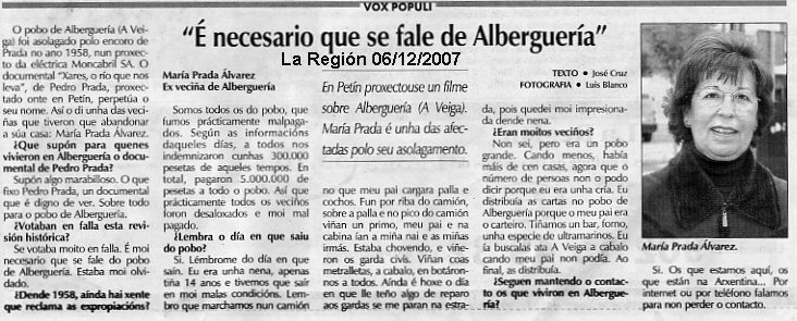 Por cierto Maruja fue una de las que entregó un detalle al director de la película, Pedro Prada, de los Vecinos de Alberguería en la proyección que tuvo lugar en Ourense.