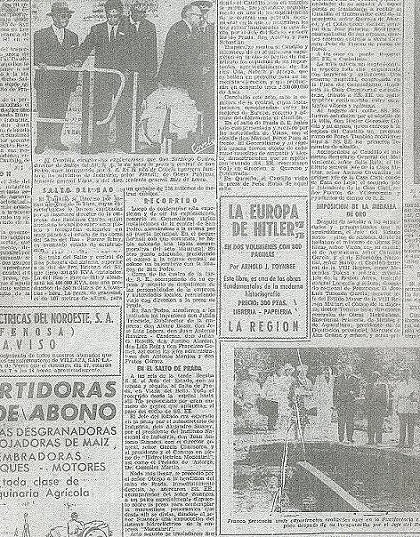 | El texto decía lo siguiente: El texto explica que por la mañana Franco estuvo en Carballino donde le dieron la medalla de oro de la ciudad...por la tarde antes de las cuatro inauguro el embalse de San Pedro en los Peares...Cerca de las cuatro partió para Prada... A partir de aquí sigo el texto de La Región al pie de la letra: