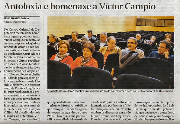 reflexión. É un idioma que converte a Víctor Campio no poeta galego,