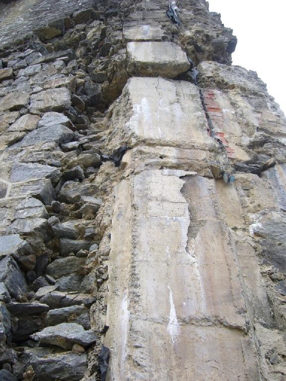 Aquí vese o nulo casamento dos materiais na parte central da presa, aparte vense algúns materiais raros, incluso de metal...Hoxe está incluso peligroso para o que se acerca a presa como o autor desta fotografía, a cousa non está nada segura.