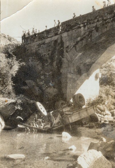 Accidente na ponte de Alberguería, onde caeu un camión. Non houbo feridos. Este accidente tuvo lugar cando estaban facendo a presa e foi moi espectacular.