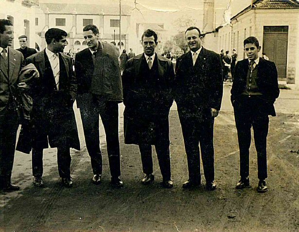 No Barco en decembro do 1958. De ezquerda a dereita ?, Rafael Fernández, Manolo (de Ourense), ugarte (Encargado Xeral), Campos (Almacén) e hijo.