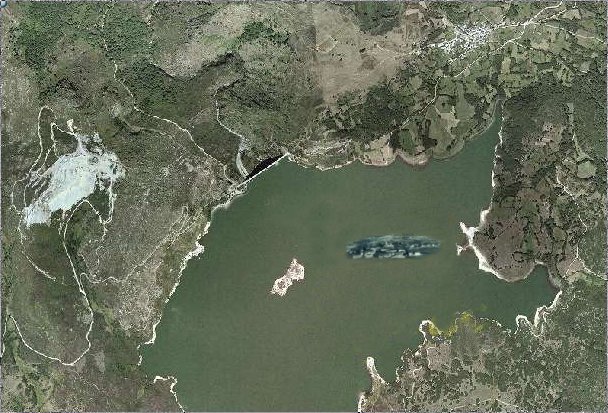 Aquí fixen unha simulación, como si fora "unha ollada nas augas profundas" e puxen onde estaría o pobo de Alberguería no ano 1958.