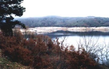 | A Veiga. Cola do encoro. Antiga ponte da carretera. Realmente o encoro deixa a terra fea, queima todo, podrece todo menos as lembranzas do lugar. | A Veiga, xusto na cola do encoro de Prada. Parte de arriba da actual ponte. Aquí vese o regato dos Corzos a dereita, e o río Xares a esquerda. | |