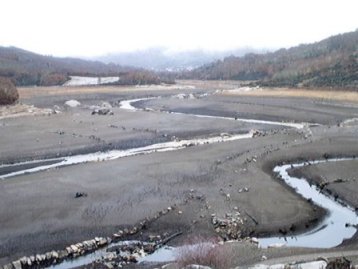 | O fondo vense unhas pequenas pedras que o parecer eran as últimas casas da Alberguería. O encoro estaba o 34% da súa capacidade pero o pobo de Alberguería inda non se veía. | Encoro de Prada dende as casas dos inxenieros de Moncabril. Realmente está moi baixo, pero non hobo sorte. | |