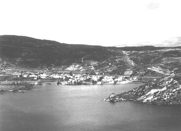Na fotografía, xa co encoro facendo o seu labor destructor, vese a Alberguería. A dereita o alto de Preboubo (hoxe chamada a ínsula de Preboubo). A fotografía está tomada dende a represa.