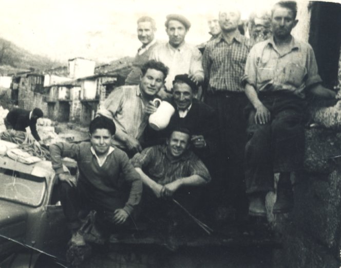 Homes recuperando material do pobo de Alberguería. 1957. Desmatelamento do pobo de Alberguería.