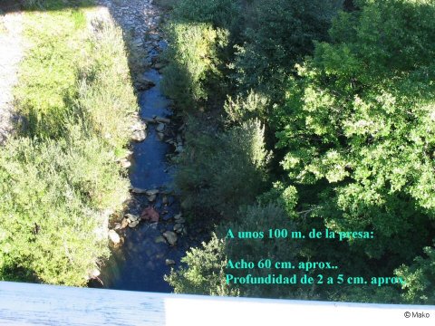 Río Xares en Novembro do 2001. Lastimoso. O caudal ecolóxico penoso, apenas levaba auga, aparte de estar morto... Encoro de Santa Eulalia. Dende 1998 Endesa (hoxe Iberdrola) deixa un caudal penoso, ata ese ano o río iba seco total.